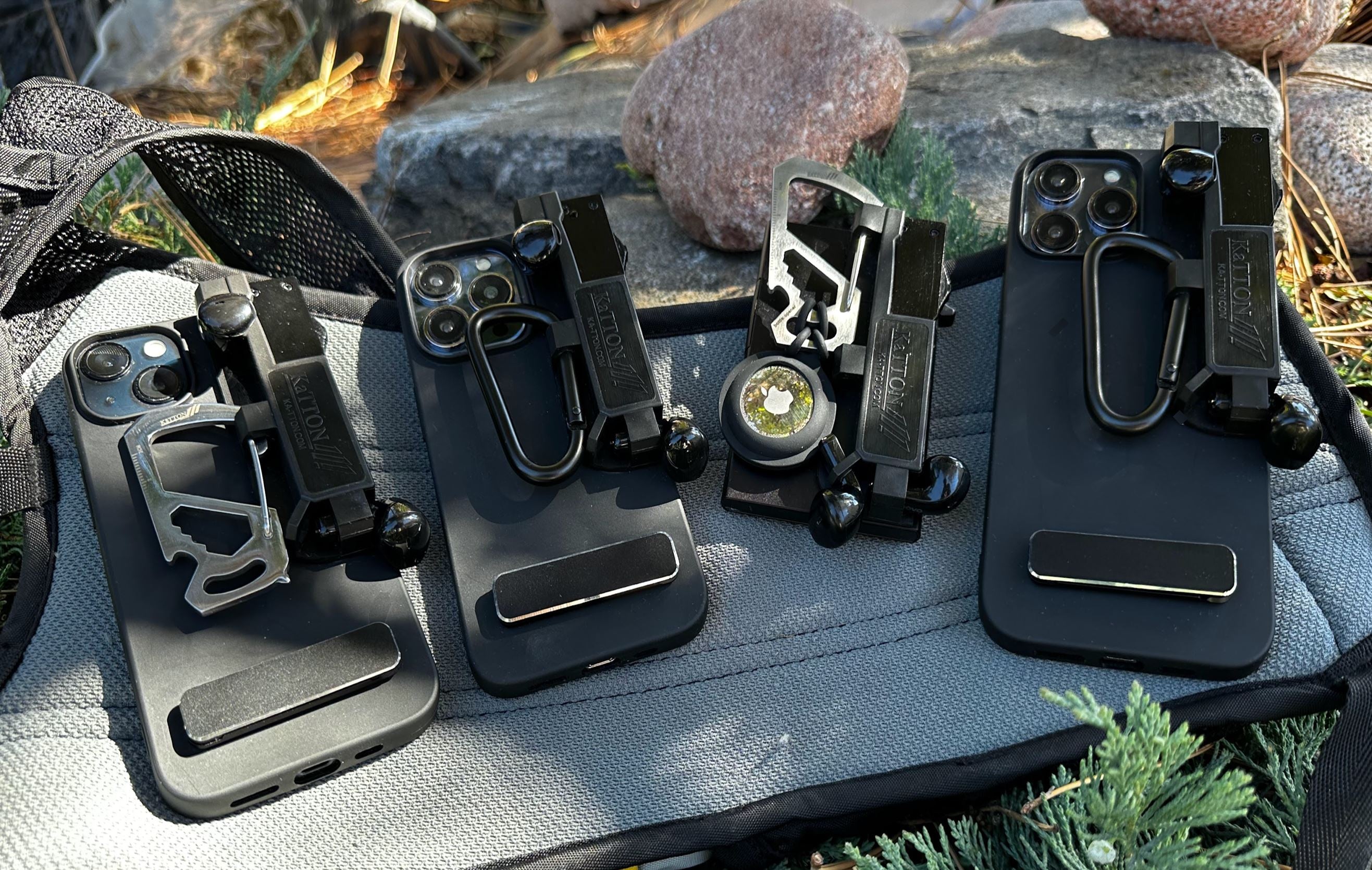 KaTTON phone case Compatible with iPhone 13 Pro Max, Multitool Phone Case holder for Removable Multi-Tool or USB, Air Tag Holder, Kickstand, Carabiner Finger Holder, Finger Loop & Air Pod holders